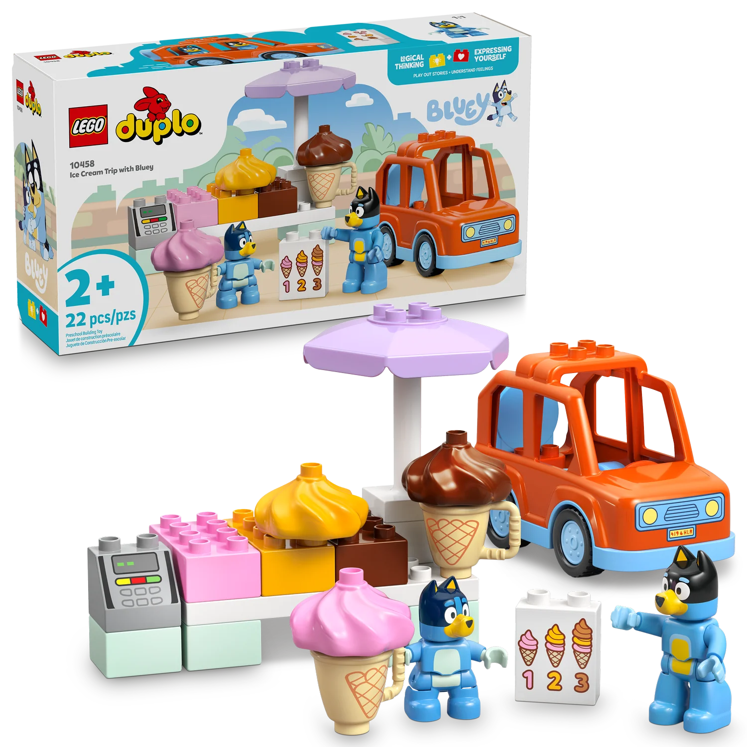 Immerse preschoolers in role-play fun with the Ice Cream Trip with Bluey toddler toy (10458). Preschoolers enjoy imaginative play as they go on a LEGO® DUPLO® adventure using this vehicle playset to recreate scenes from the Bluey TV show.
