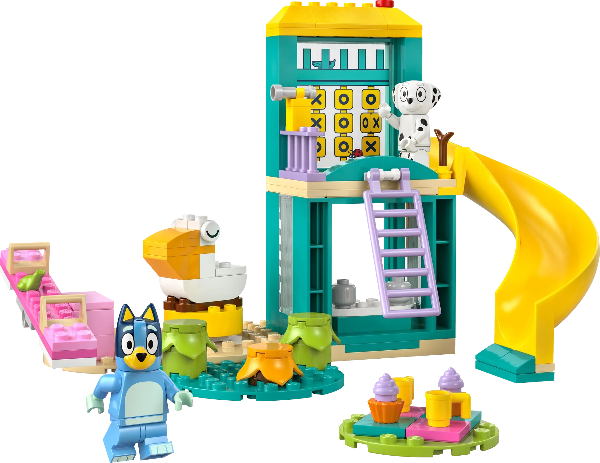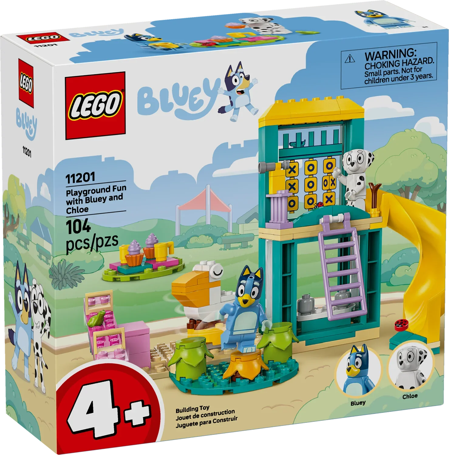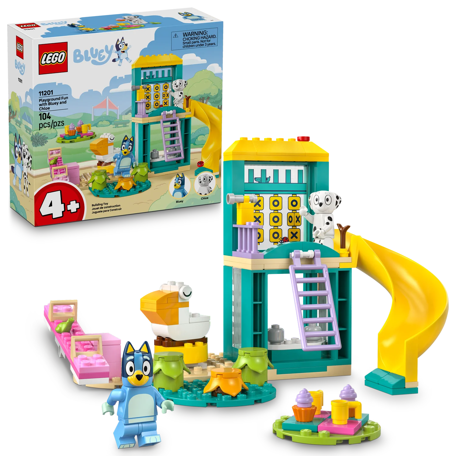 Playground Fun with Bluey and Chloe (11201) is a preschool toy for fans of the Bluey TV show and is designed to deliver endless creative-play possibilities that develop the confidence and problem-solving skills of kids aged 4 and up. This versatile preschool playground toy features minifigures of popular TV dogs Bluey and Chloe in a vibrantly colored playground, complete with seesaw, slide, jungle gym and rotating pelican ride.
