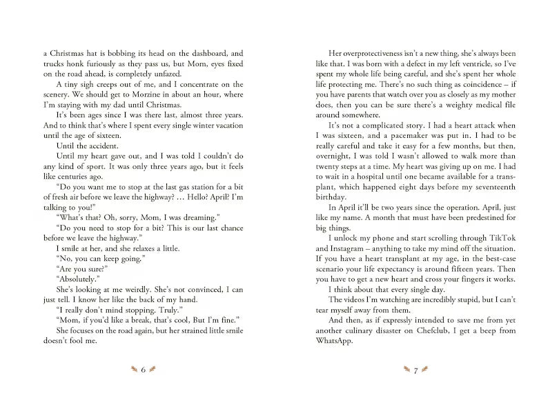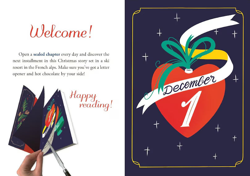 In this touching YA advent romance novel, each of the 24 chapters is sealed behind perforated edges, so that readers can use a ruler to open one chapter each day in the countdown to Christmas - it's the ultimate slow-burn romance! When eighteen-year-old April heads to the foothills of Mont Blanc to spend her first Christmas at her father’s chalet since her heart transplant two years earlier, she knows she won’t be able to carry on living the restrictive lifestyle she has imposed on herself since the operation. Exercise under surveillance, green tea, and rice cakes aren’t exactly compatible with her adventurous father’s everyday life! When April reconnects with her best friend’s handsome, daring older brother Augustin, she realises that he’s not going to let her let her life pass her by any longer. Is April’s heart ready for a Christmas miracle?