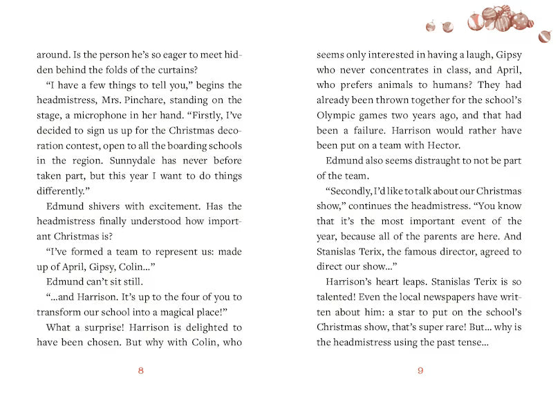 Harrison, April, Gipsy, and Colin, four students at Sunnydale Hall Boarding School, have been tasked with the most annoying mission possible: organize the school's Christmas show TOGETHER. And all because, with less than a month before the big show, the director has simply DISAPPEARED... The investigation begins, and the school is chock full of puzzles to solve.