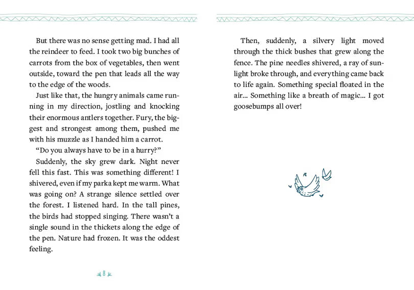 In this beautiful advent novel, each of the 24 chapters is sealed behind perforated edges, so that readers can use a ruler to open one chapter each day in the countdown to Christmas! Elliot lives with his parents on their reindeer farm at the edge of the forest. This Christmas, Elliot’s cousin Flore is coming to visit and he can’t wait for all the adventures they’re going to have! As the cousins are walking back from the station one afternoon, they meet a curious old man claiming to be a toymaker and looking for a missing animal. When they get back to the farm, they find that one of the reindeer is behaving rather strangely… his fur is shining extraordinarily bright and, as he moves, it almost looks like he could fly… With a new chapter to reveal and read each day of advent, join Elliot and Flore for a Christmas more full of magic and adventures than they could have imagined!